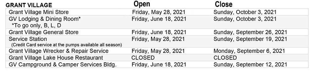 Grant Village West Thumb And South Entrance 2018 Schudule Nps Image Yellowstone National Park Yellowstone Yellowstone National