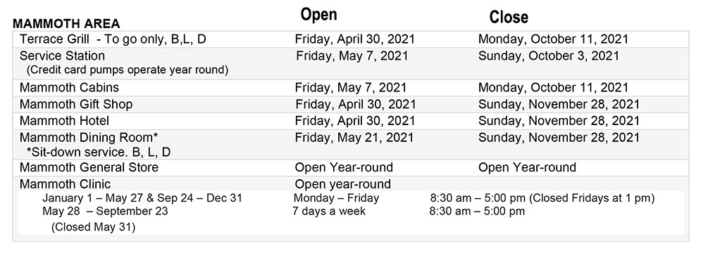 Mon-Thur at Mammoth Hot Springs 830am-5pm Fri-Sun outside Yellowstone Forever in Gardiner MT 830am-5pm. Open seasonally for lunch and dinner.